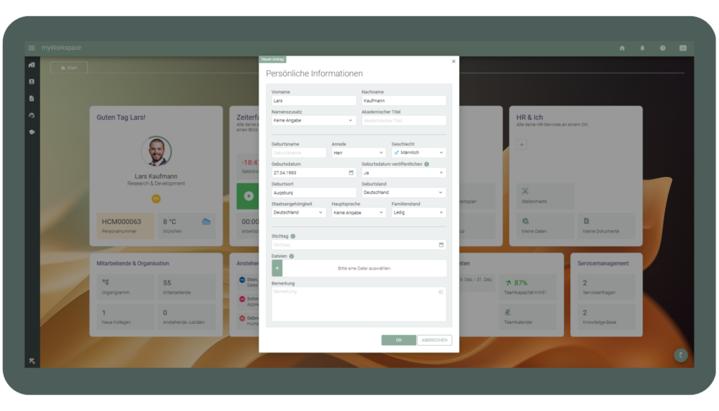 Alle personalrelevanten Daten und Dokumente werden zentral im Personalprofil und im Dokumentenmodul geführt. Informationen sind vollständig, aktuell und an einem Ort verfügbar. HR behält jederzeit den Überblick über Mitarbeitende und Arbeitsverhältnisse.